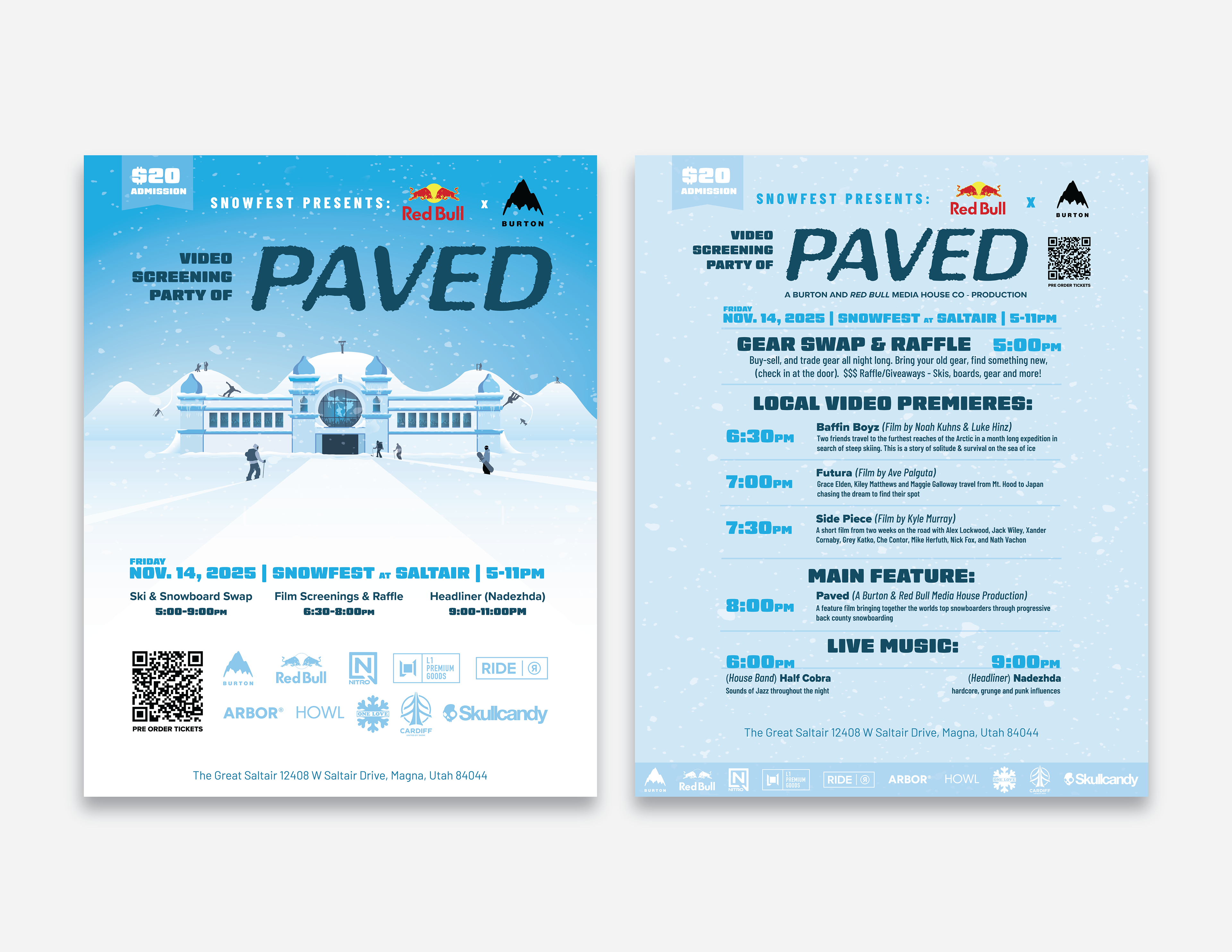 Signage and promotional design for a film screening event, including Instagram ads, printed posters, and a published placement in Salt Lake Weekly.
